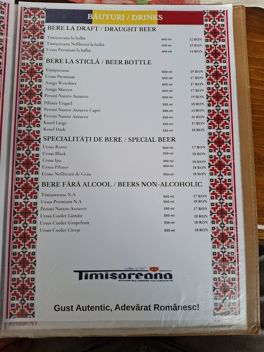 The sweeping views from the terrace provide a picturesque backdrop for enjoying meals, making it an ideal spot for both locals and tourists. While service may occasionally lag, the emphasis on quality food at reasonable prices makes every visit a culinary success. Whether you're looking to indulge in classic dishes or sip on local brews, Timișoreana invites you to savor the richness of Romanian cuisine in a welcoming atmosphere.